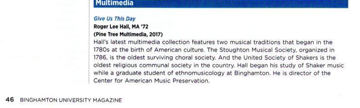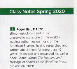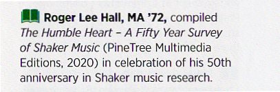 Over the past fifty years, Roger Hall has composed numerous songs and instrumental pieces.  One of his early compositions, "Variations on a Shaker Marching Tune" was composed while he was a graduate student at Binghamton University in 1971 and is included on a new CD album titled, “Celestial Praises.”