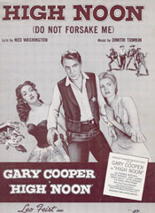 The famous title song by Tiomkin, with lyrics by Ned Washington, was available even before the film was released in 1952 and helped to sell the film. It has been suggested that the song's theme came from a Russian folk song melody. Does that really matter when the song is so memorable? There were two major recordings of "Do Not Forsake Me." First was the one made by Frankie Laine for Columbia Records, followed by one made by Tex Ritter (who sang the song on the film's soundtrack), released by Capitol Records. Both were tremendous hits and million-sellers. For those who may wonder what instruments were employed in the film version of the song, they were: novachord, guitar, and accordion.