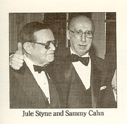 Sammy worked with many songwriters and arrangers, including George Barrie, Nicholas Brodszky (the "Irving Berlin of Hungary"), Saul Chaplin (Sammy's first collaborator), Vernon Duke, Sammy Fain, Gene DePaul, Axel Stordahl, but most of all with these two great songwriters, who were also Oscar award winners: