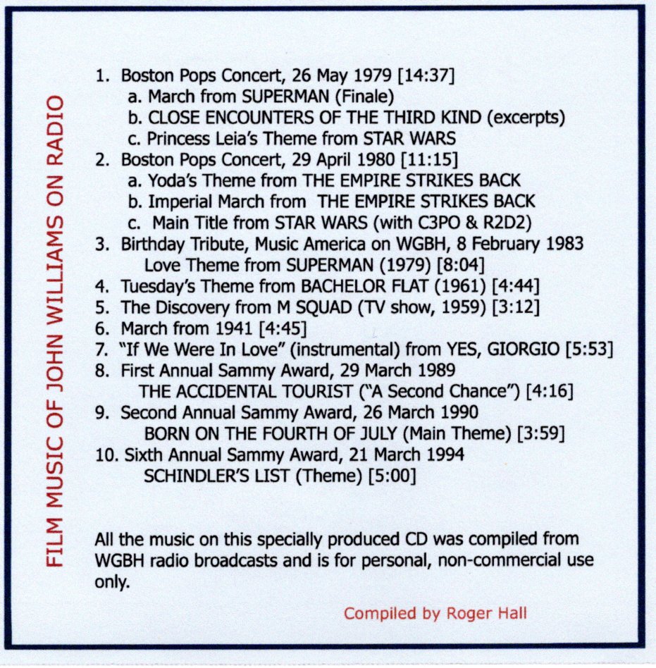 See the special limited edition CD -- Film Music of John Williams on Radio.