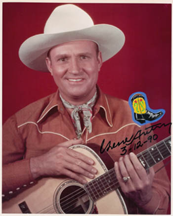 I was fortunate to get this wonderful autographed photo of Gene autographed in 1990. For many years I have been a big fan of his movies, radio and television programs and also his many recordings.