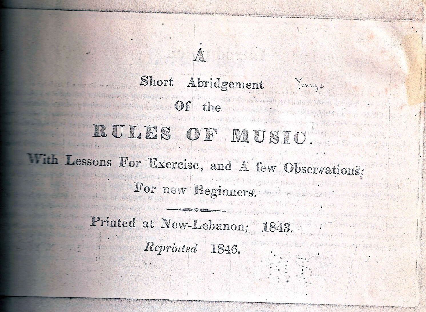 Tune is from the 1843 music instruction book by Isaac N. Youngs, New Lebanon, NY -- Gail