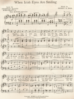 In 1944, singer Dick Haymes played songwriter Ernest Ball in WHEN IRISH EYES ARE SMILING (1944). Actor Dennis Morgan played Chauncey Olcott in MY WILD IRISH ROSE (1947).