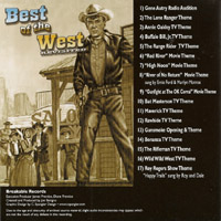 The remaining eight tracks all are TV themes from well known western shows, mostly from the 1950s and '60s. Where else will you get to hear the rarely heard themes for "Bat Masterson" and "The Riflemen," as well as better known ones, such as "Gunsmoke" and "Bonanza"?